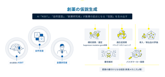 *3 DDAIF:AIと創薬に精通したFRONTEOの創薬エキスパートが、KIBITの自然言語処理技術と独自の解析手法を駆使し、標的分子・適応症探索やその裏付けとなる仮説を提供するAI創薬支援サービス