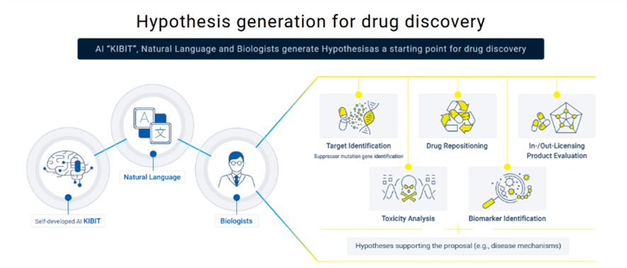 *3 DDAIF: An AI drug discovery support service in which FRONTEO’s drug discovery experts, who are well-versed in AI and drug discovery, use KIBIT’s natural language processing technology and proprietary analysis methods to search for target molecules and indications and provide supporting hypotheses.